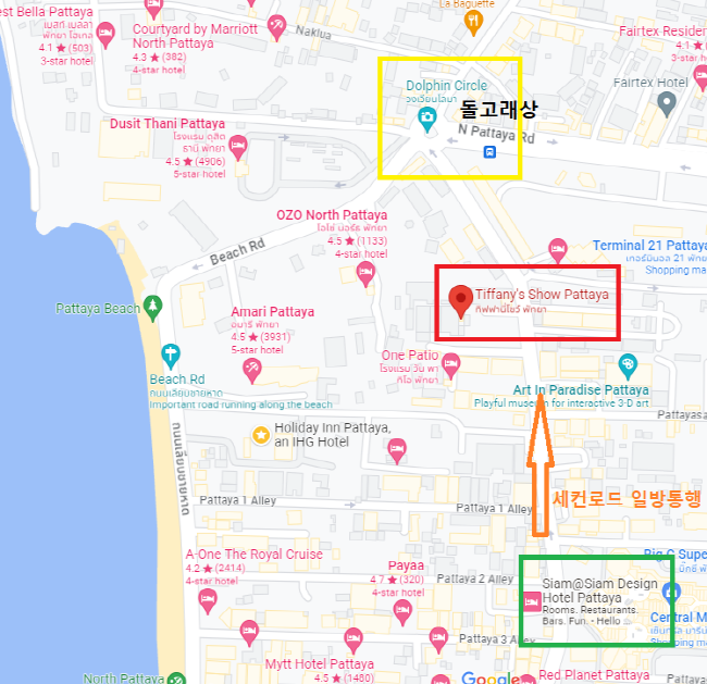 ​▶ 티파니 쇼장 가는방법 티파니 쇼장은 일방통행인 세컨로드의 왼편에 있습니다. · 대중교통 이용시 : 세컨로드쪽에서 썽태우를 타고 가시다가 왼쪽에 Siam@Siam Pattaya 호텔을 지난 후 한국 식당이 몰려있는곳이 보이시면 벨을 누르고 하차하세요. 하차하신 곳에서 조금 더 걸어가면 왼편에 티파니 쇼장이 있습니다. ​ · ​택시 이용시 : ​구글지도에 [Tiffany Show Pattaya] 를 검색해서 이동하시거나 기사님께 [빠이 티파니 쇼 카/크랍] 이라고 말씀해주세요.