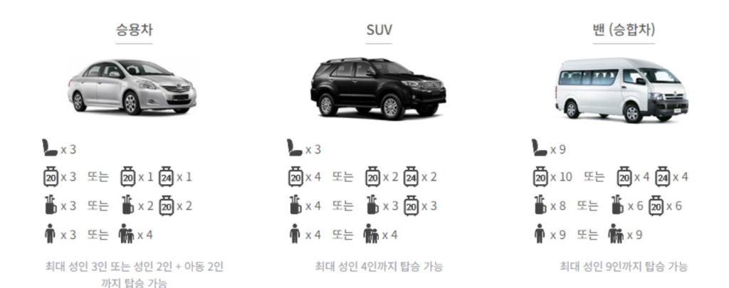 SUV → 승합차 : 40,000원 (1대가격)