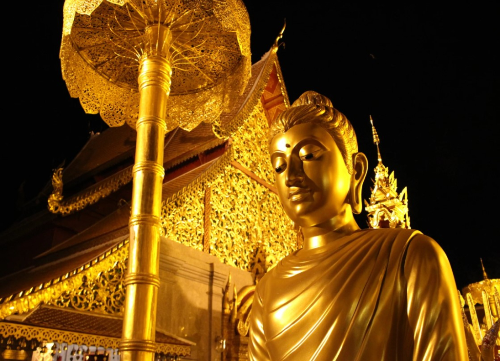 사원 내부에선 황금으로 도금된 눈이 부신 거대한 황금 탑과 크고 작은 불상들,