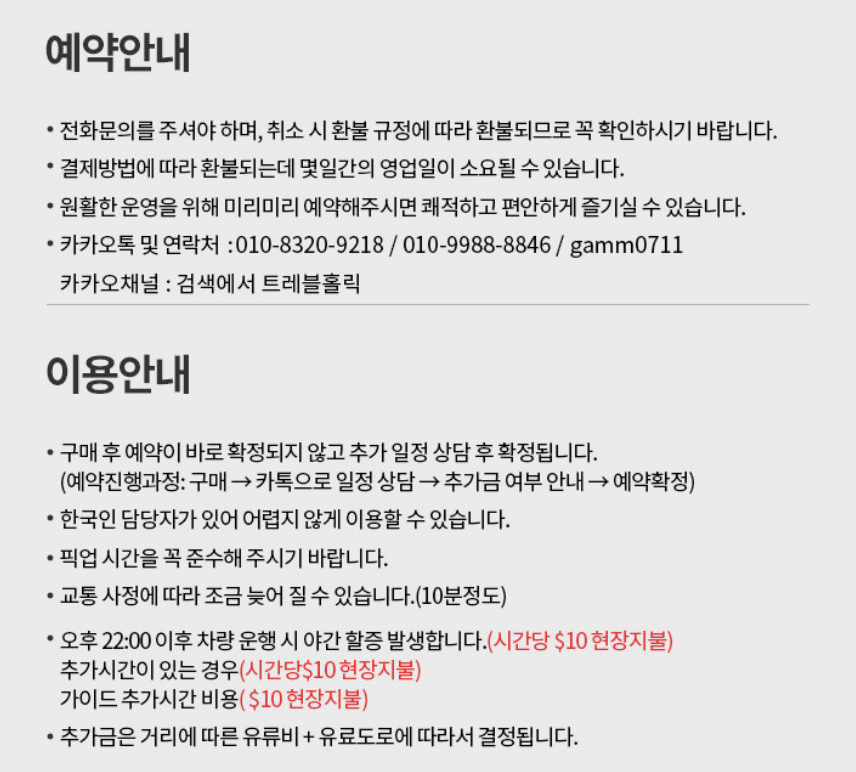 • 투어 3일 전 취소(한국시간 17시까지): 전액 환불