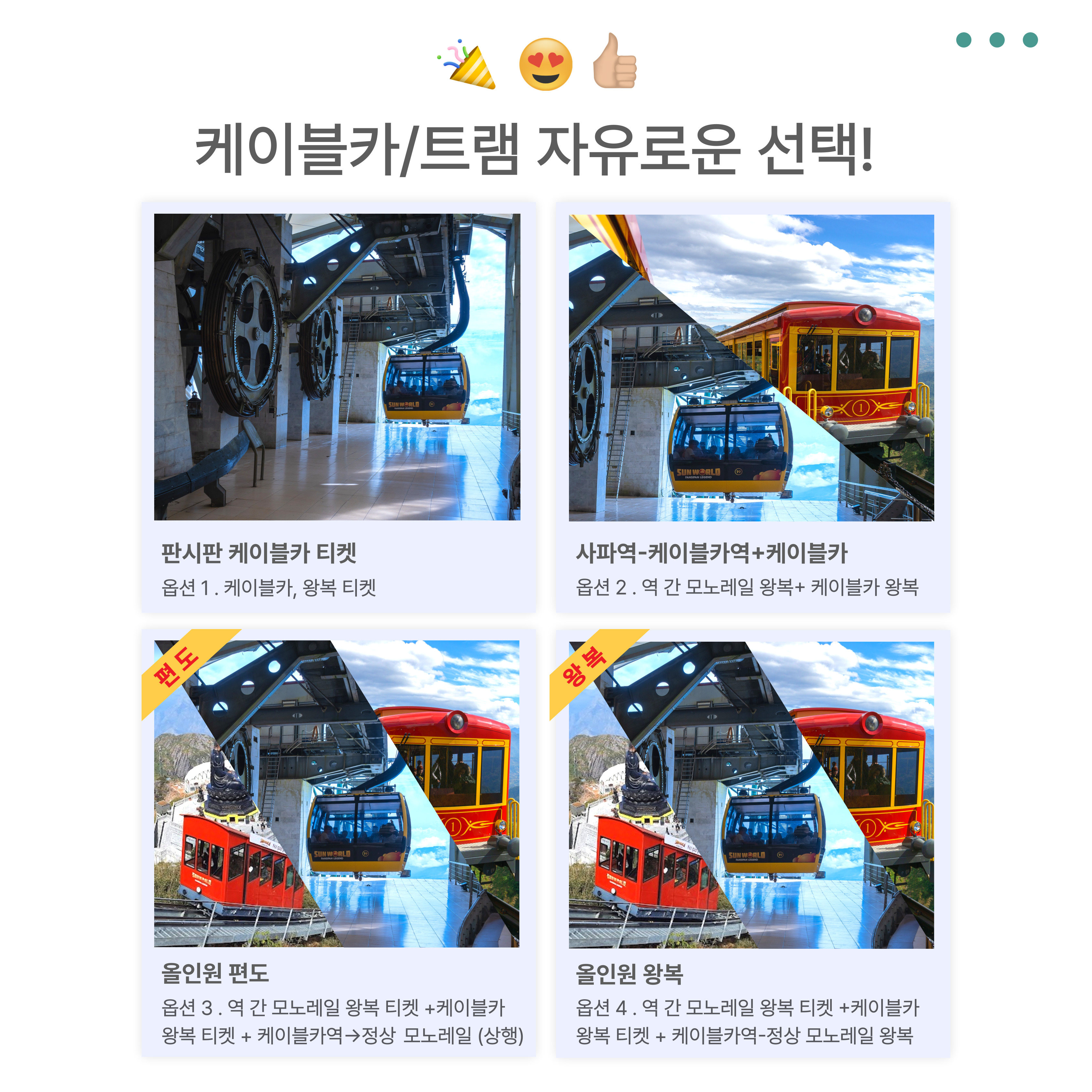 4. 모노레일 + 케이블카 + 정상 모노레일(편도) 티켓을 특히 강력 추천합니다!