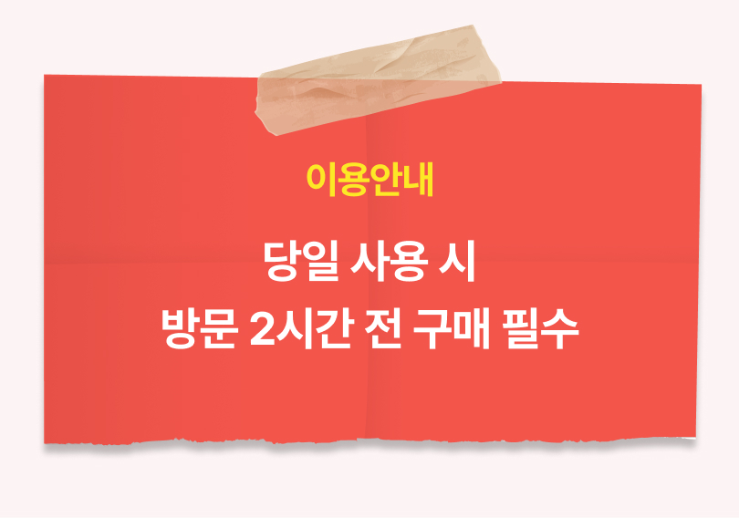 당일 방문 시에는 방문 2시간 전까지 구매가 필수입니다.