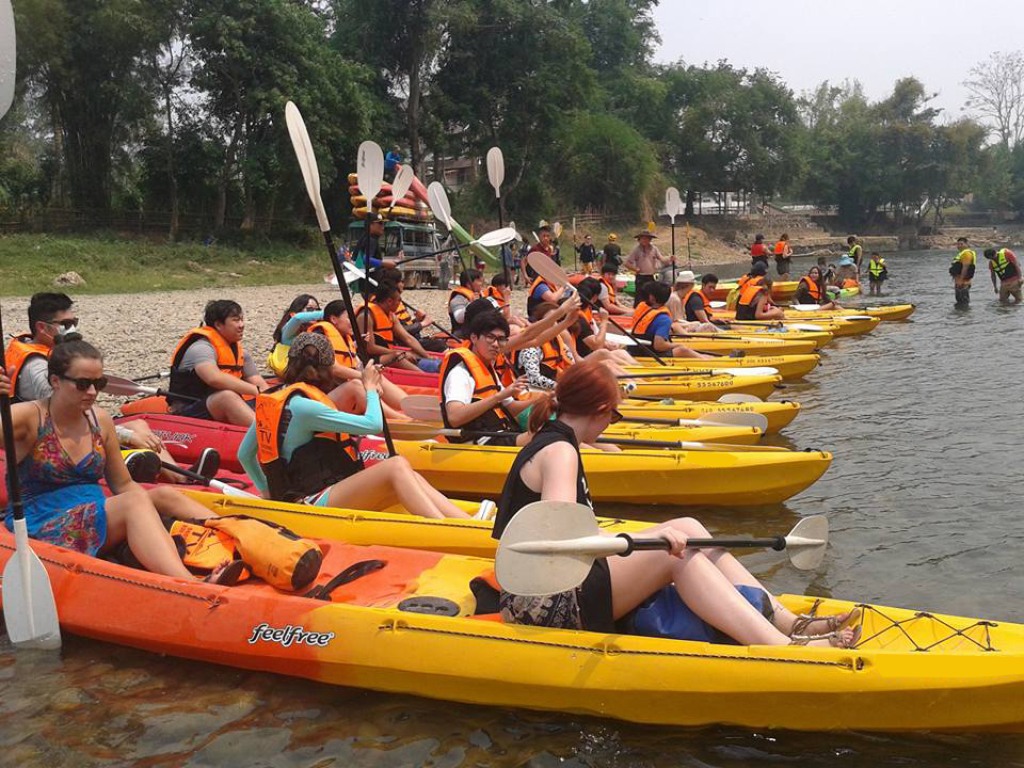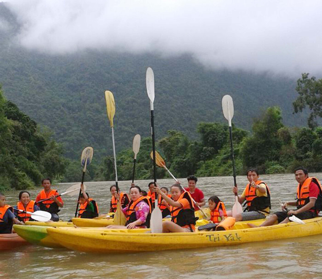 카약킹 탑승 남쏭강 경치 즐기기