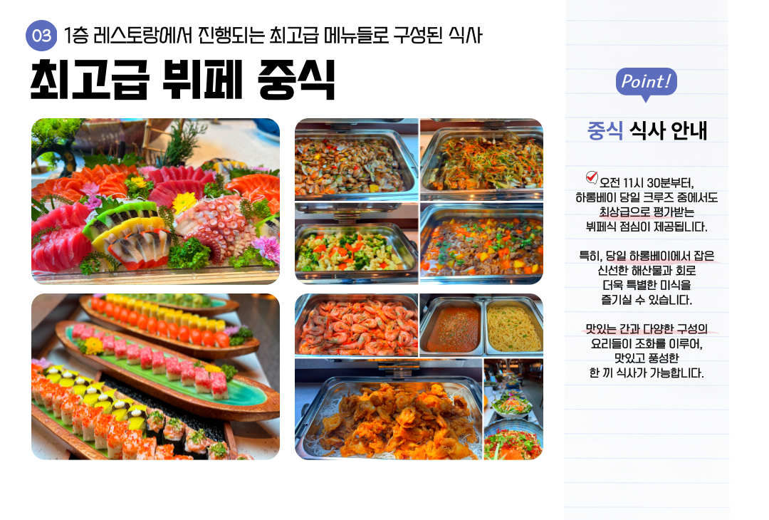 • 🍴 식사제공 : 최고급 인터네셔널 뷔페 중식
