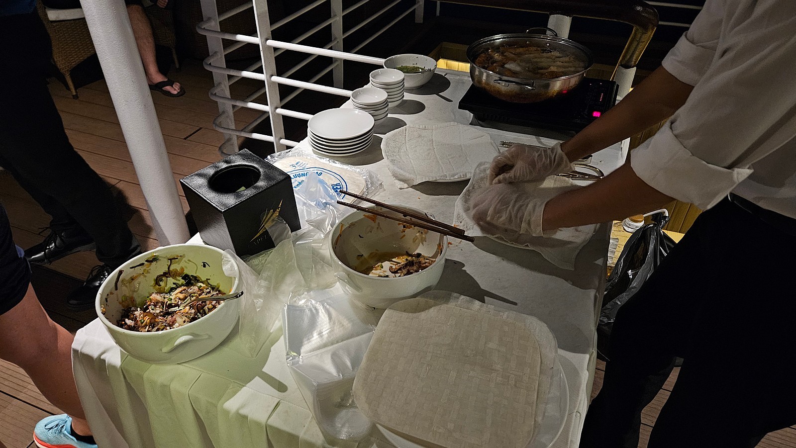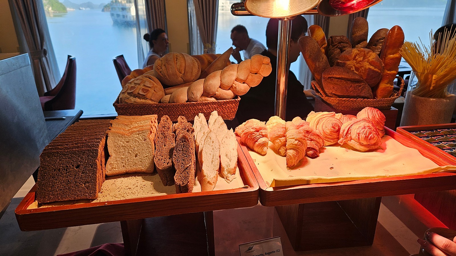 승선 후 객실에서 잠시 짐을 풀고 바로 오후 1시부터 중식이 제공됩니다. 중식 퀄리티는 아주 좋은 편입니다. 양식 + 현지 퓨전 음식으로 주로 제공됩니다. 서양인 탑승객들 위주로 빵이나 디저트류도 많이 준비되어 있습니다.