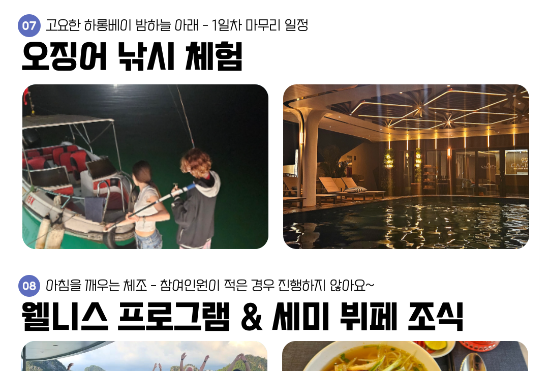 * 지금부터 이하 내용들은, 1박 2일 크루즈 현장 상황에 따라 예고 없이 변경될 수 있습니다.