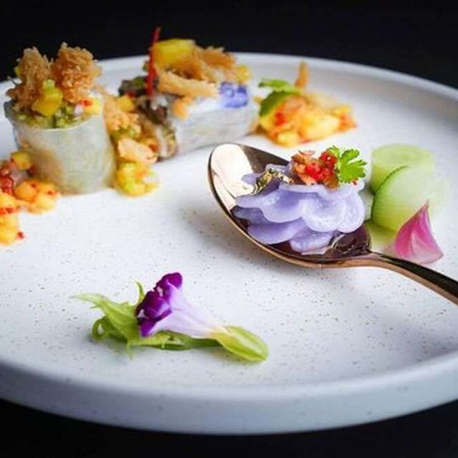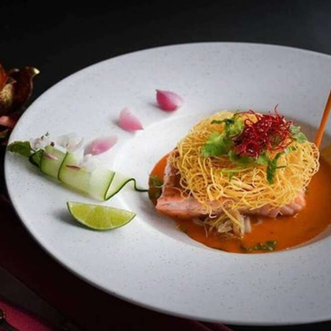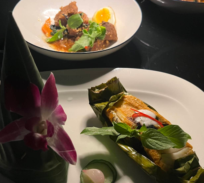 반얀트리 호텔의 유명한 태국 레스토랑 사프란에서 공수한 요리와 함께