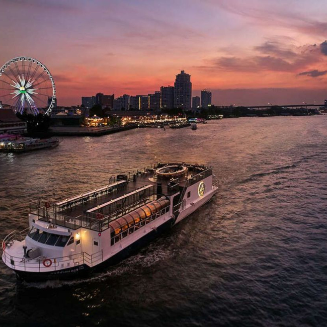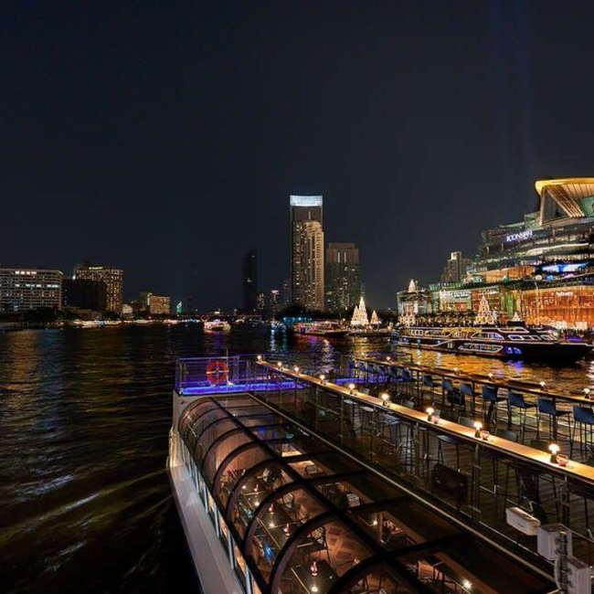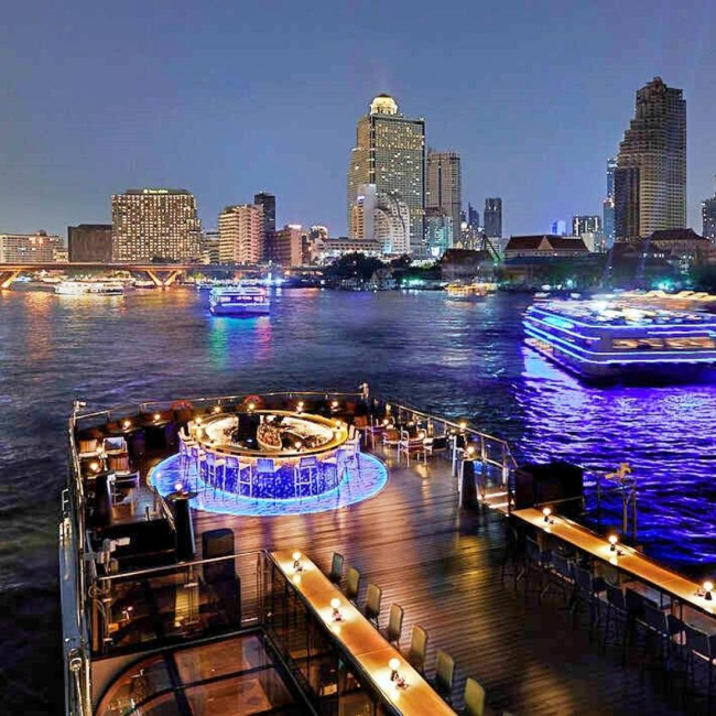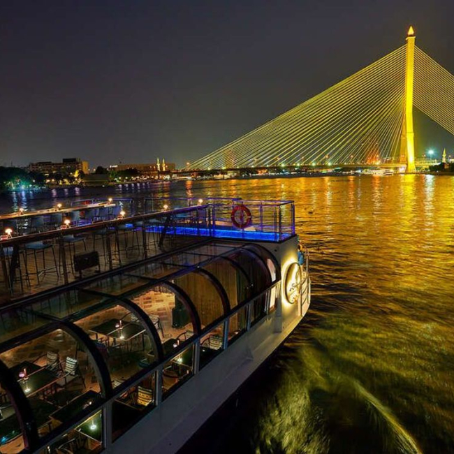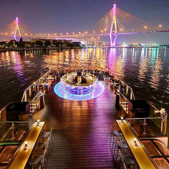 태국 전통 음악이 잔잔하게 흐르는 고급스럽고 로맨틱한 분위기의 크루즈입니다.