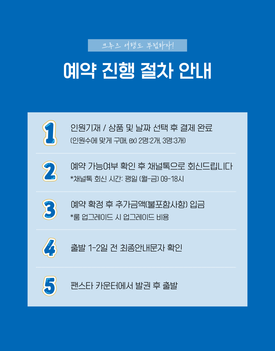 문의 주시면 잔여객실 조회 → 가능 일정 안내 → 예약 절차까지 담당자가 자세히 도와드립니다.