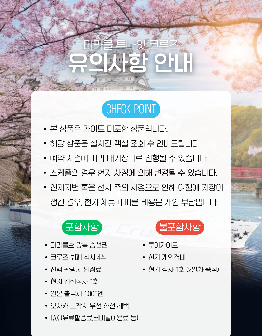 [크루즈]5성급호화 미라클호 나라 OR 온천 투나잇크루즈