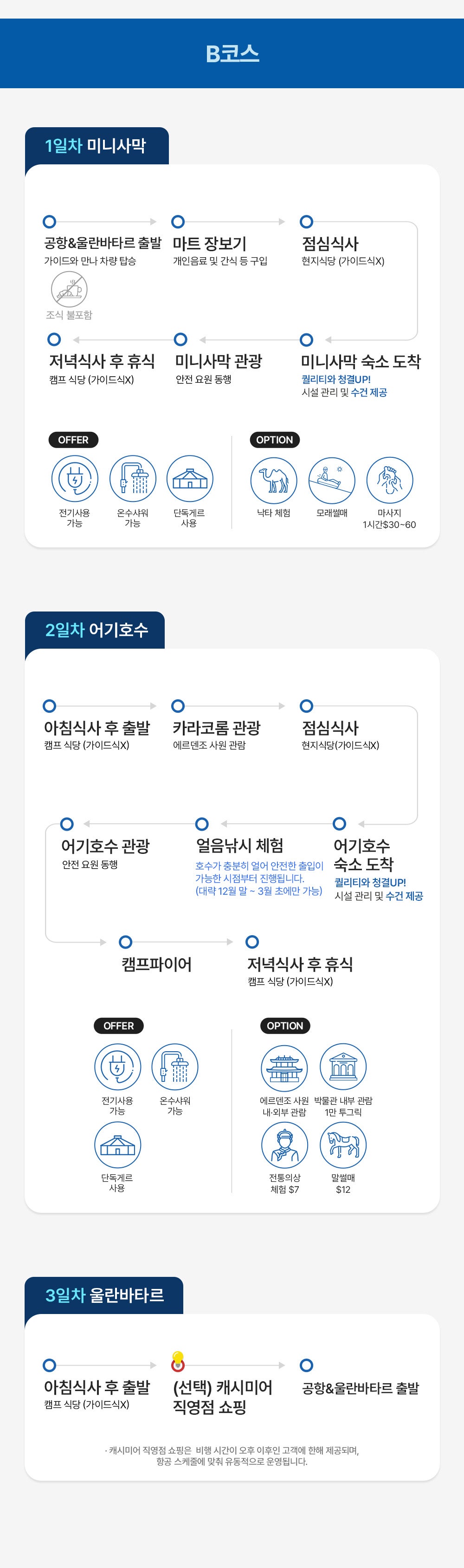 모래썰매,낙타,사막은하수,홉스골호수,무릉,허르헉,승마,캠프파이어,보트,볼강