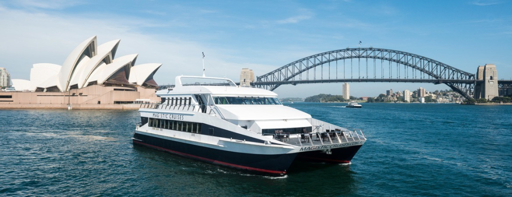 1. 매지스틱 런치 뷔페 크루즈 미팅장소 : No.6 King St Wharf Darling Harbour 체크인시간 12:15 크루즈 출발시간 12:30 이용시간 : 약 2시 - 런치뷔페 샘플 메뉴 (시즌에 따라 변경될 수 있음) CHAFING DISH SELECTION Baked fish with braised leeks, tomato & olives Classic beef stroganoff Traditional Indian butter chicken Hokkien vegetable noodles Orecchiette pasta with broccolini, fresh basil, chilli and garlic Medley of roasted vegetables with italian herbs Oriental vegetarian fried rice Chef's garden salad Herb tomato sald DESSERT Tiramisu 2. 매지스틱 사이트씽 크루즈 미팅장소 : No.5 King St Wharf Darling Harbour 체크인시간 14:30 크루즈 출발시간 14:45 이용시간 : 약 1시간