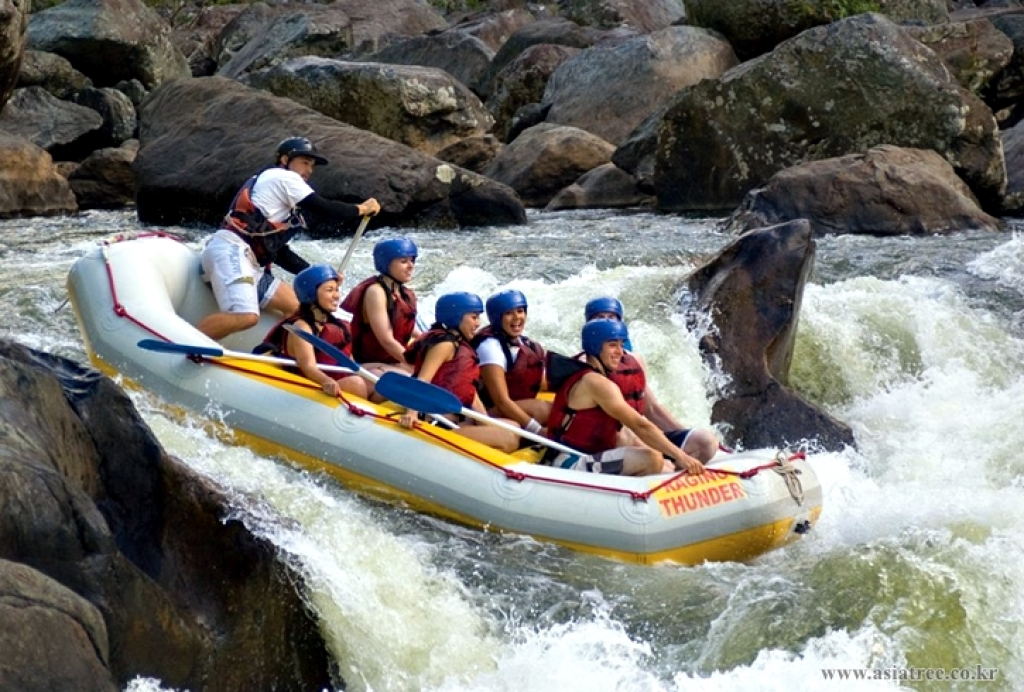 래프팅은 순서는 이렇습니다. (1) 호텔에서 픽업 (2) 래프팅 출발지점으로 차량으로 이동 (3) 구명조끼와 헬멧, 노를 지급받은 후 안전교육 및 패들링 교육 (4) 그다음 레프팅 시작!! - 6~7명이 한조로 래프팅 보트에 탑승을 하며, 뒤에 래프팅 가이드가 함께 탑니다 (5) 래프팅 종료 후 환복하고 휴식 (6) 투어 회사에서 찍어 준 자신의 놀라운 사진들 감상 및 구입 (7) 호텔로 드랍