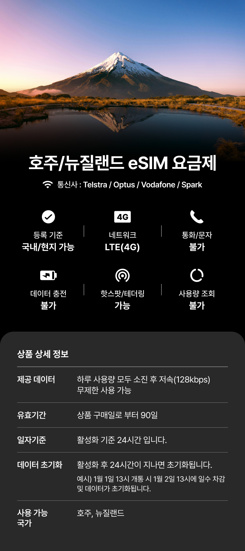 [호주/뉴질랜드] eSIM 데이터 무제한 (2GB)