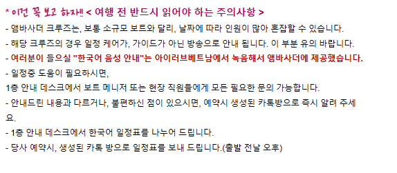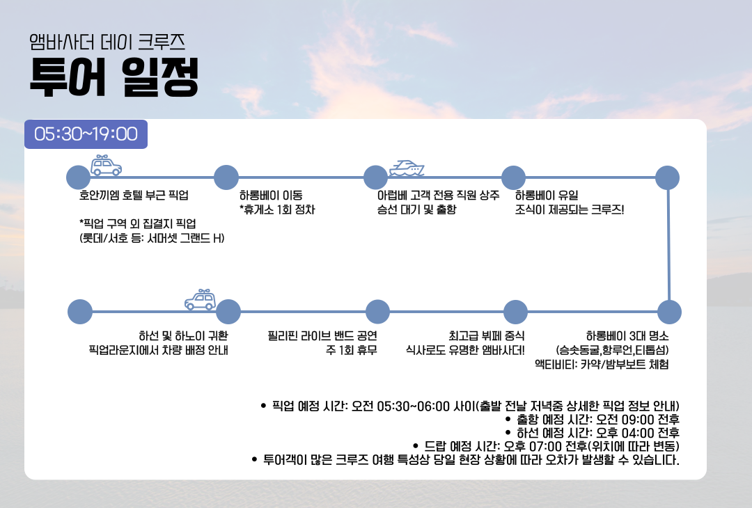 * 지금부터 이하 내용들은, 당일 크루즈 현장 상황에 따라 예고 없이 변경될 수 있습니다.