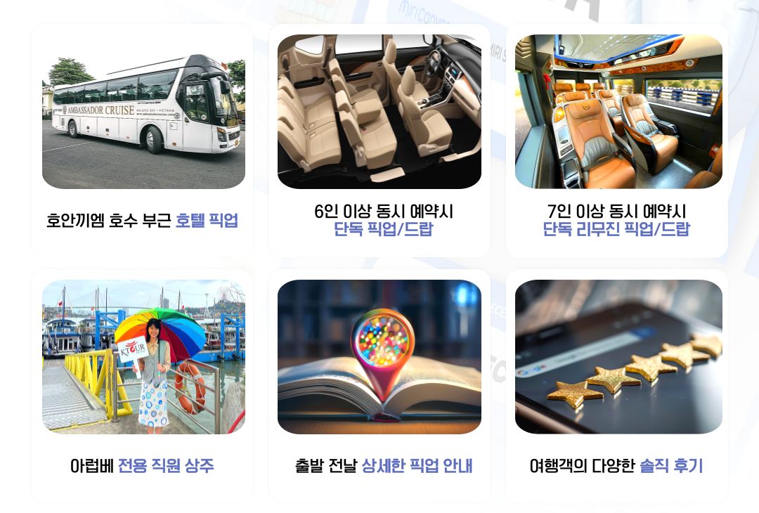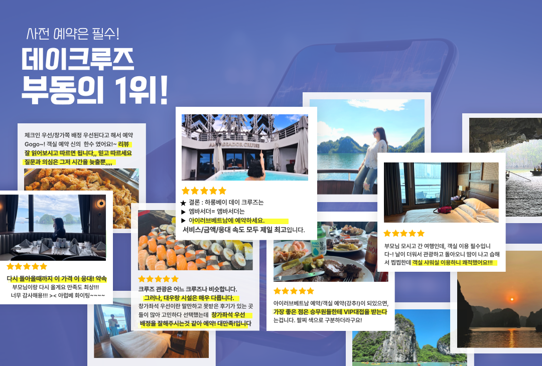 특히 하롱베이 크루즈 관련 리뷰에서는 제공된 식사의 품질, 크루즈의 규모, 그리고 작은 배로 갈아타는 경험 등이 긍정적으로 평가되었습니다. 고객들은 아이러브베트남을 통해 예약한 여행에서 편안하고 즐거운 시간을 보냈다고 언급하며, 특히 가족 단위의 여행객들 사이에서 높은 만족도를 보였습니다.
