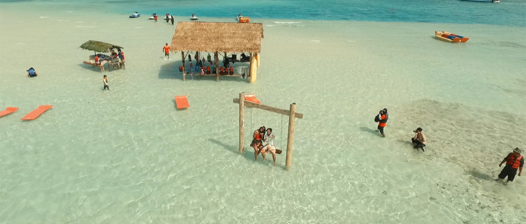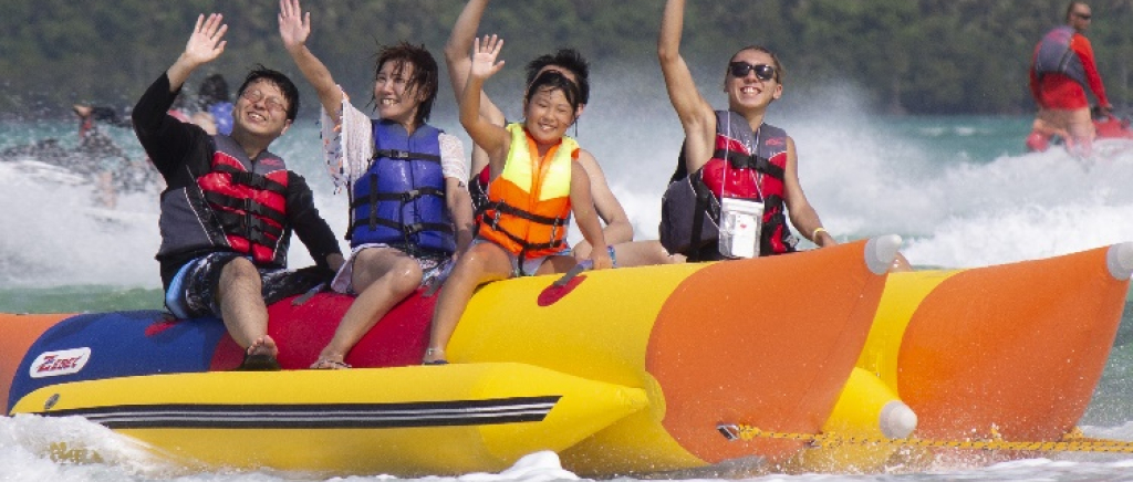 호텔에서의 픽업 및 드랍 클럽하우스 이용 더블 바나나보트로 포인트까지 이동 아쿠아워커 (선택사항) 관련장비 모두 대여