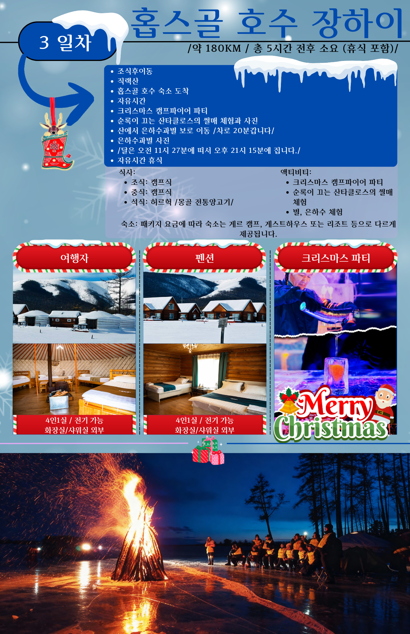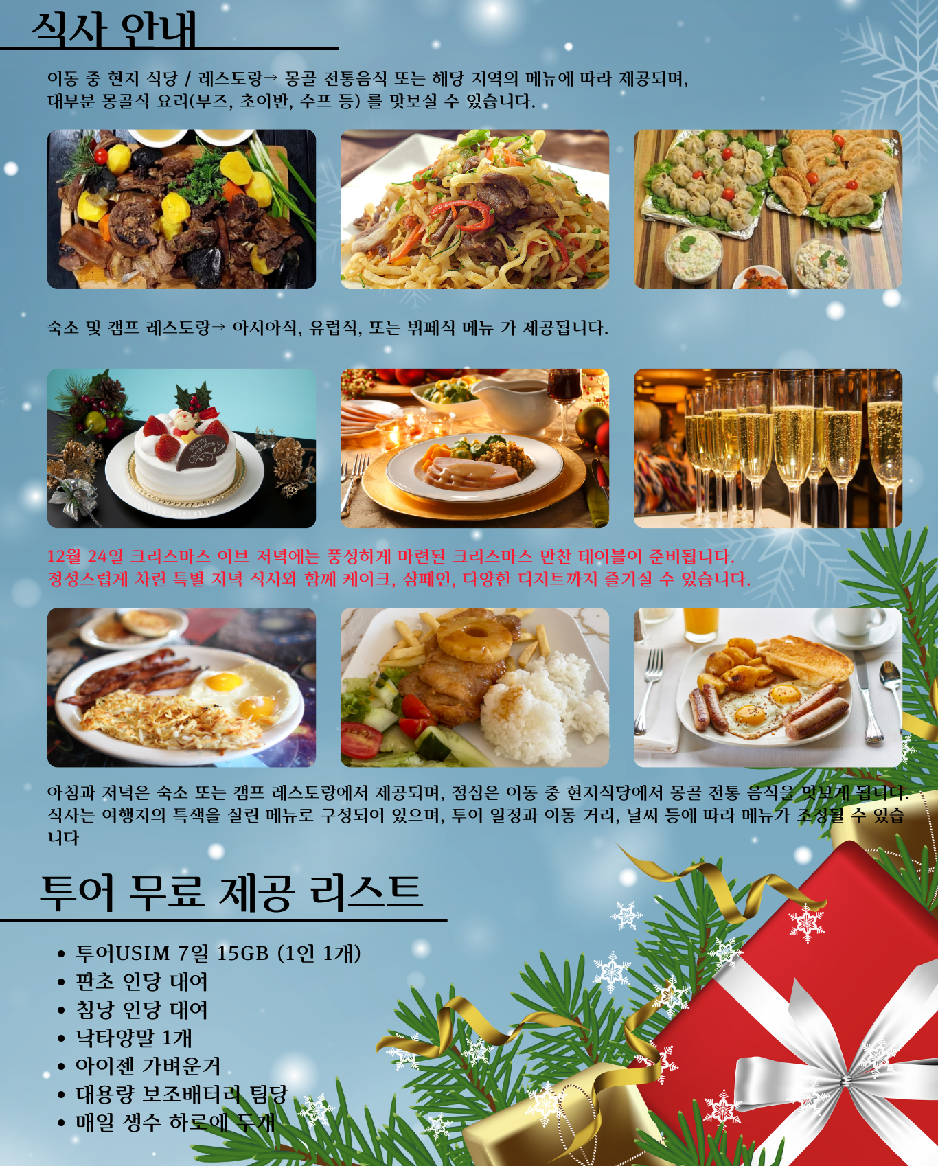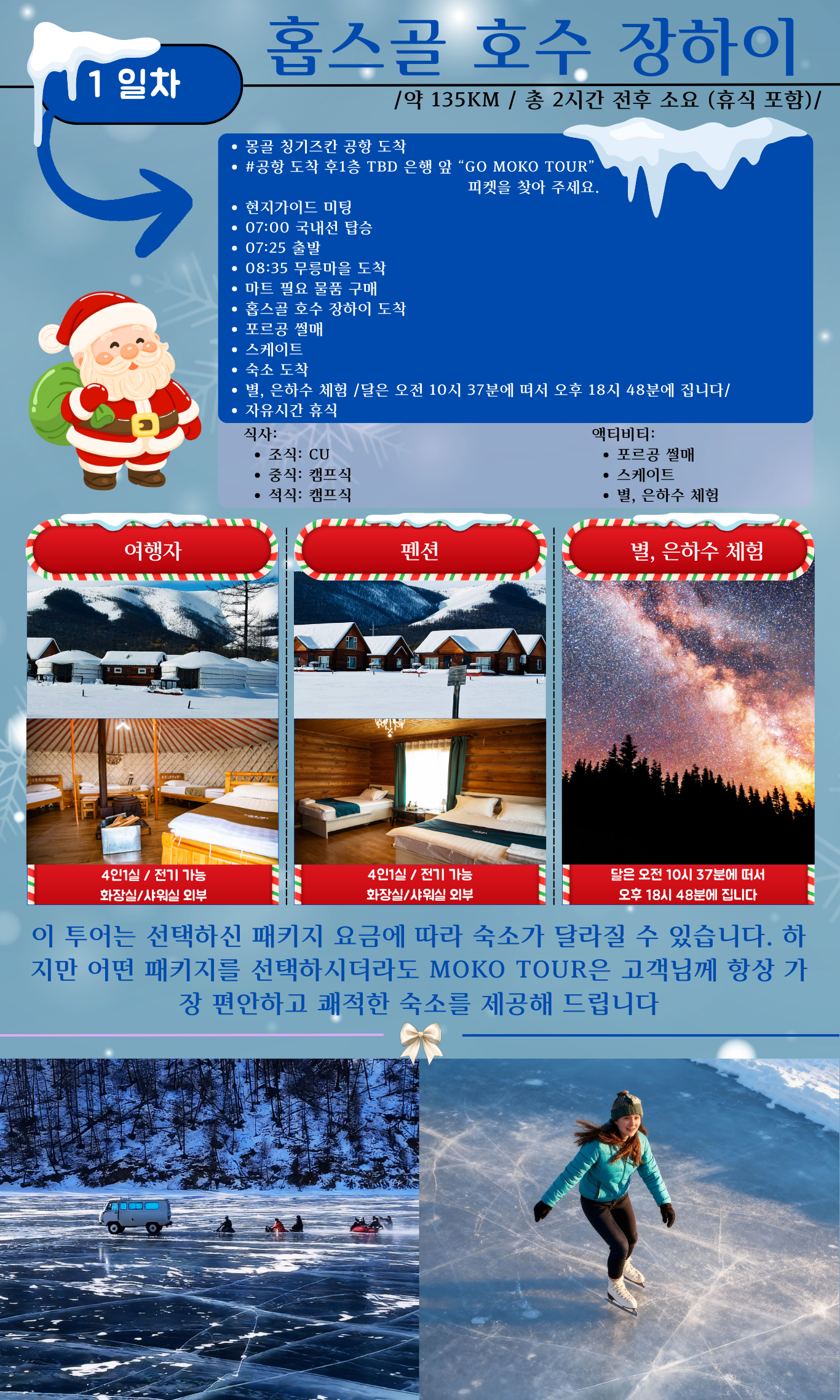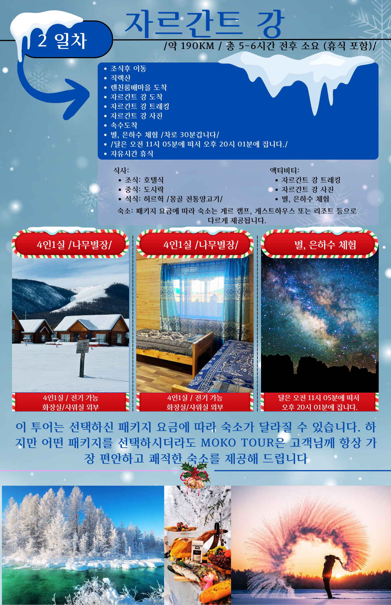 ❄ 낮 약 -28℃ / 밤 약 -35℃로 매우 추우니 반드시 준비해주세요.