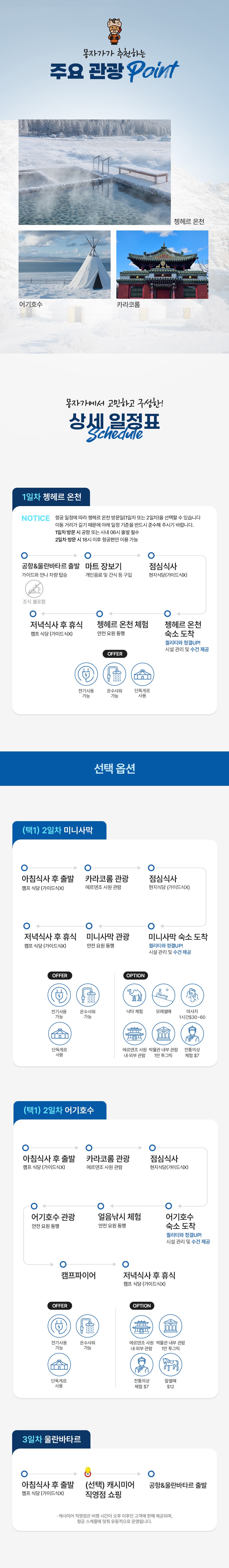 미니사막,모래썰매,낙타,아르항가이,화산,호수,수영,승마,캠프파이어,보트