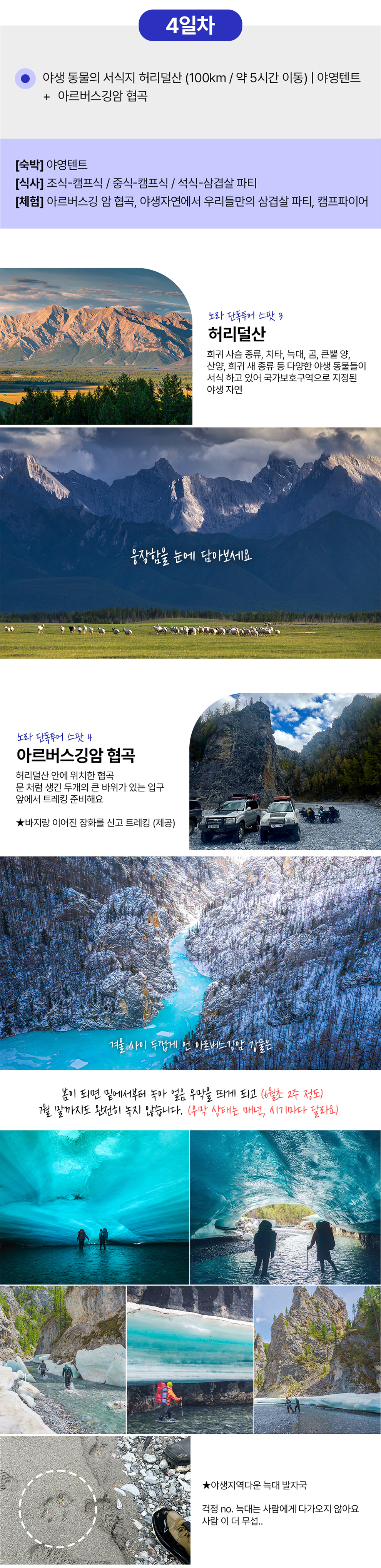 • [4day] 허리덜산맥, 아르버스깅암 협곡, 캠프파이어, 삼겹살 파티 (텐트 숙박)