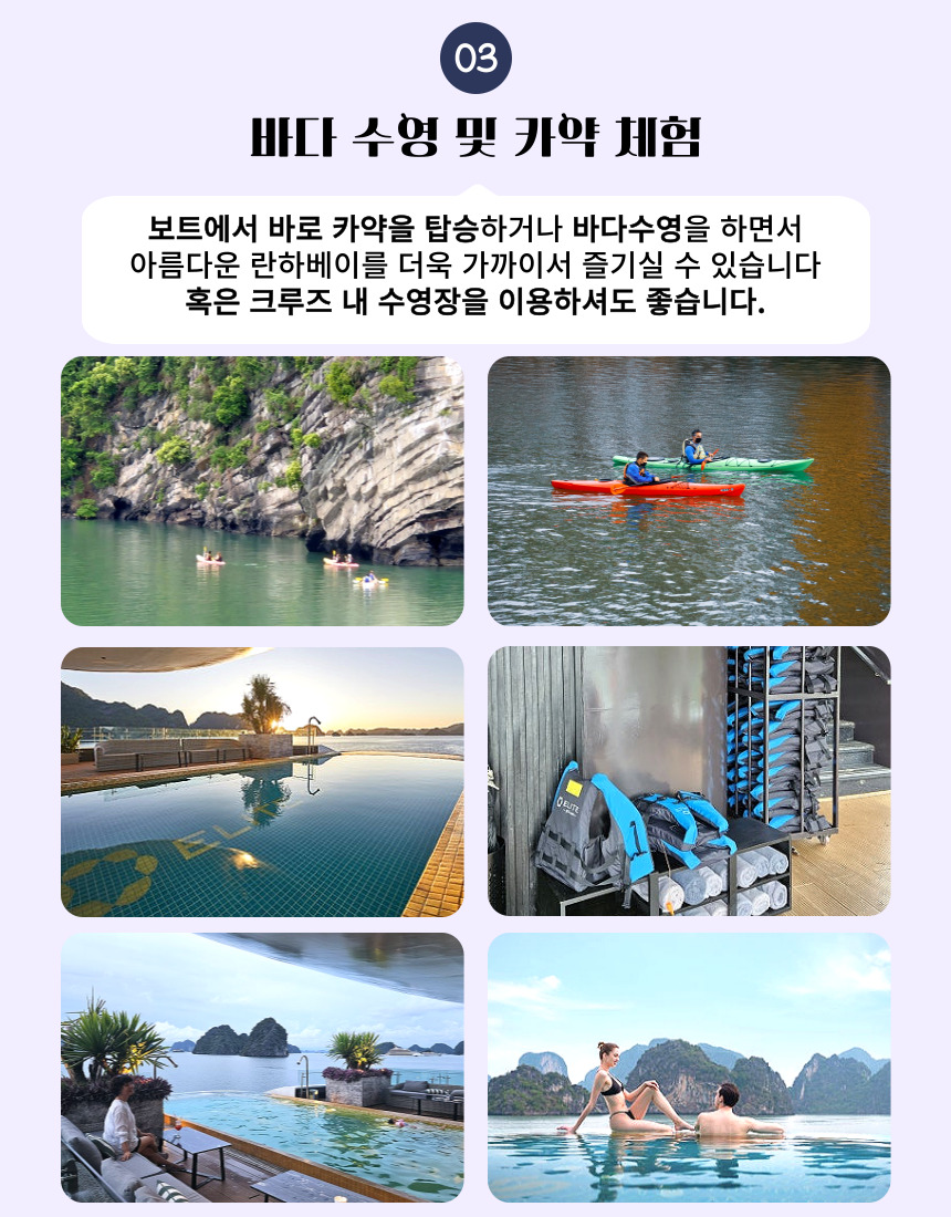 카약과 밤부보트 체험, 자유수영까지 크루즈 여행에 워터 액티비티가 빠질 수 없다! 하시는 분들께 추천드립니다!!