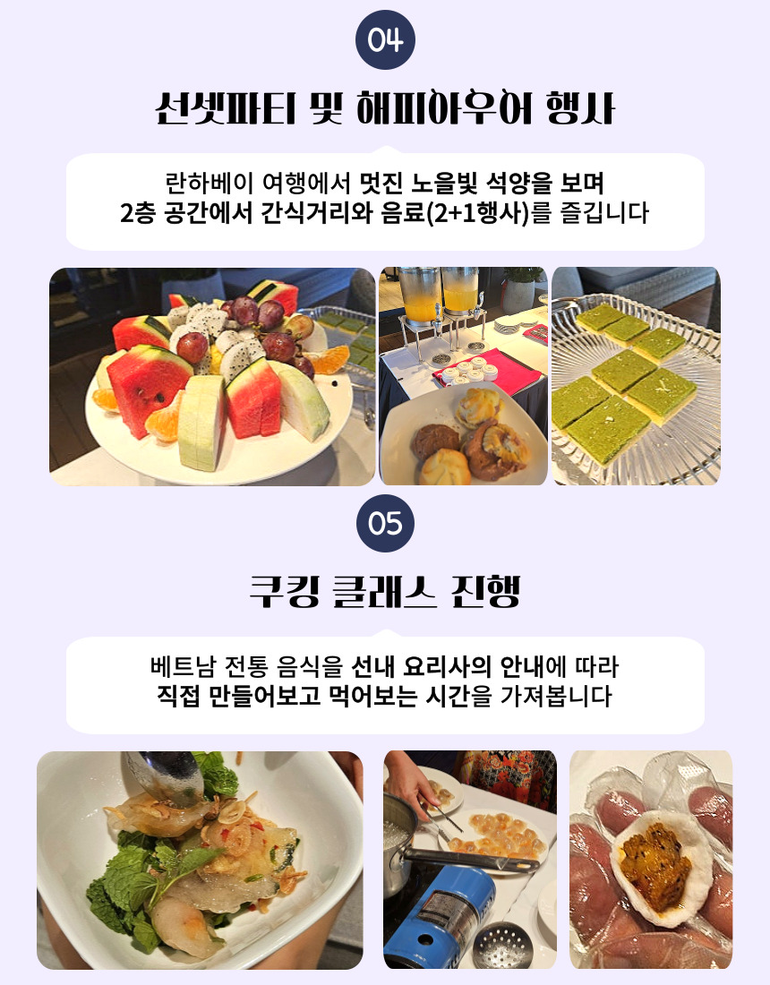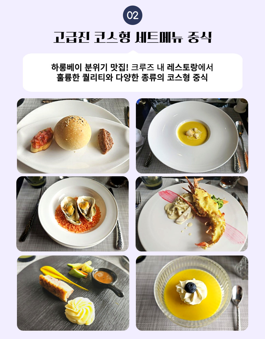 • 식사&간식 : 고급형 코스 세트메뉴 중식-쿠킹클래스-디너 만찬-조식-풀 뷔페 중식