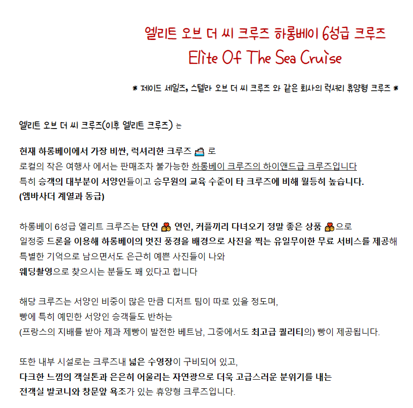 [하롱베이]  6성급 엘리트 1박2일 크루즈