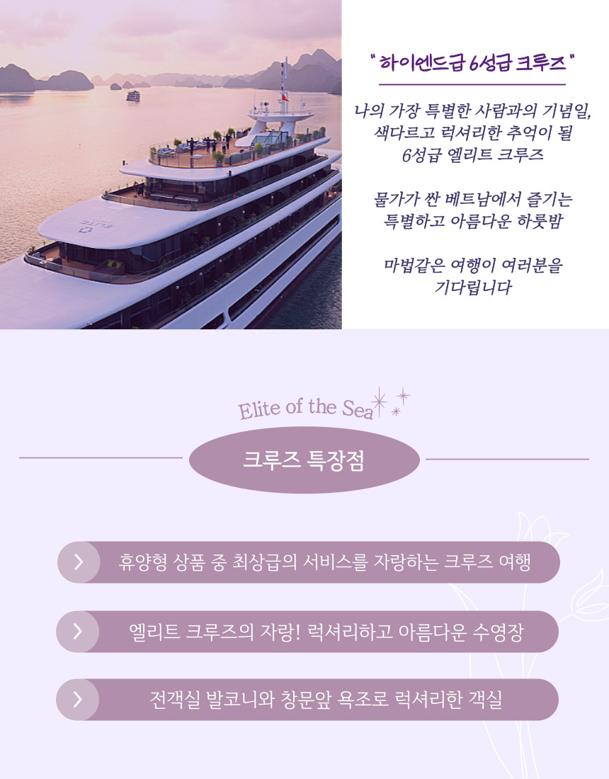 ![[하롱베이] 6성급 엘리트 1박2일 크루즈 #픽업샌딩 #휴양형](/upfiles/smarteditor/20240919193853628402298.png)