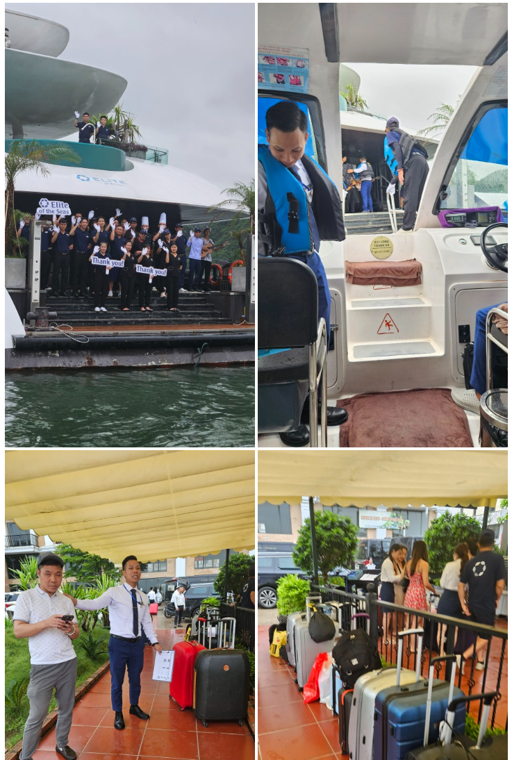 승무원들의 배웅을 받으며 스피트 보트를 이용해 다시 육지로 이동합니다.