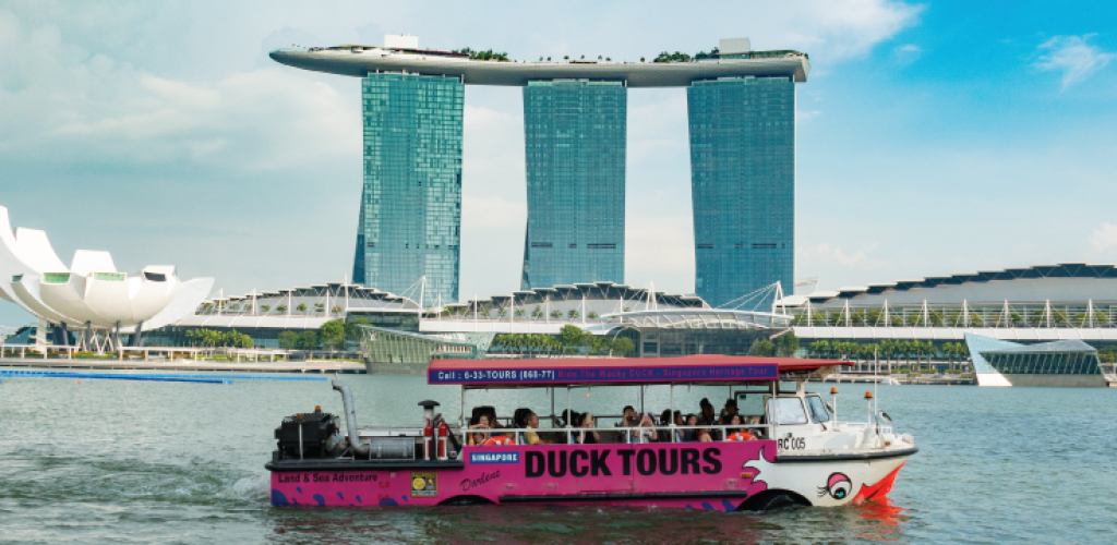 싱가포르 덕투어는 약 60분간 진행되며, 육상과 수상 모두 체험할 수 있는 수륙양용 차량 투어입니다.