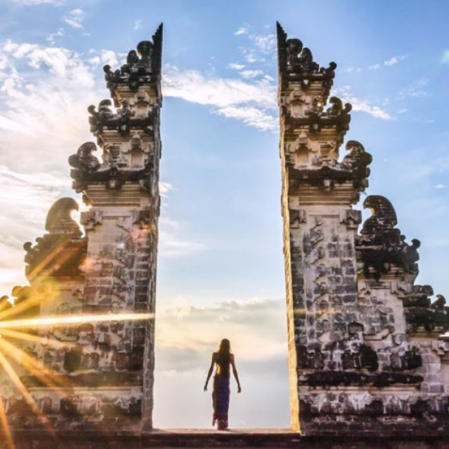사원 입구에서 아궁산을 볼 수 있는 름뿌양 사원! 발리를 대표하는 사원중의 한곳이며 천국의 문이라고도 불리는데요, 름뿌양이란 뜻은 밝은 성스러운 신의 빛 이며, 발리에서 가장 오래된 사원으로 1700개의 계단이 있답니다.힌두신화의 신이 인도의 마헤메루산에서 산을 떼어 발리에 놓았는데 가장 큰 조각은 발리 아궁산으로 만들어졌고, 그 중 남은 조각들이 발리의 언덕과 절벽이 되었는데 그 중 하나가 름뿌양 사원이랍니다.