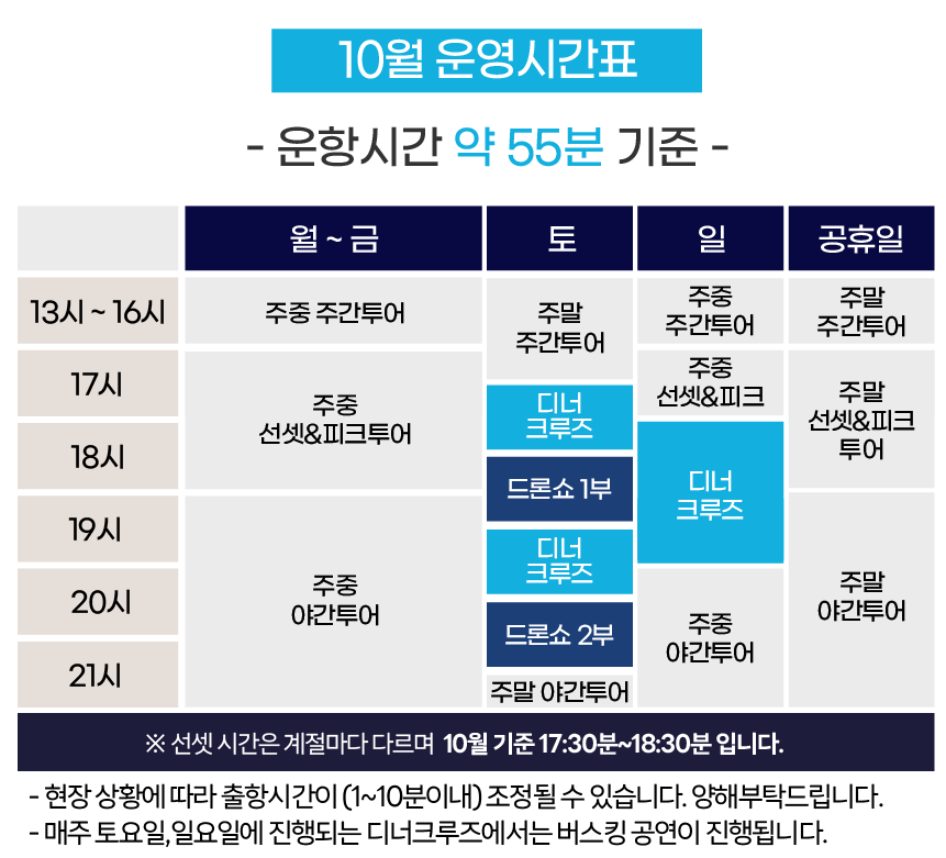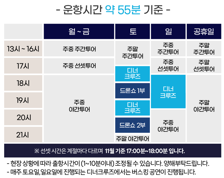 운항 시간 등 상세 스케줄은 공식 홈페이지를 참고해 주세요.