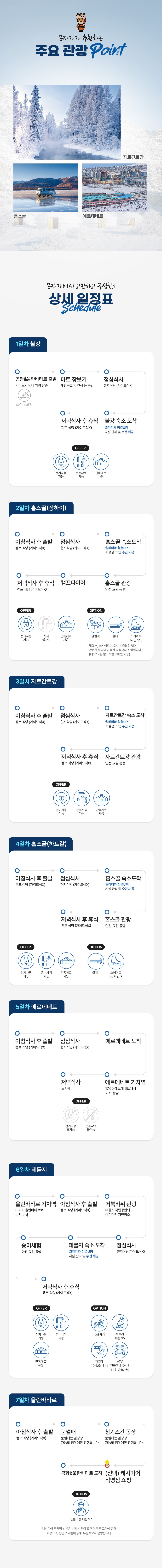 모래썰매,낙타,사막은하수,홉스골호수,무릉,허르헉,승마,캠프파이어,보트,볼강