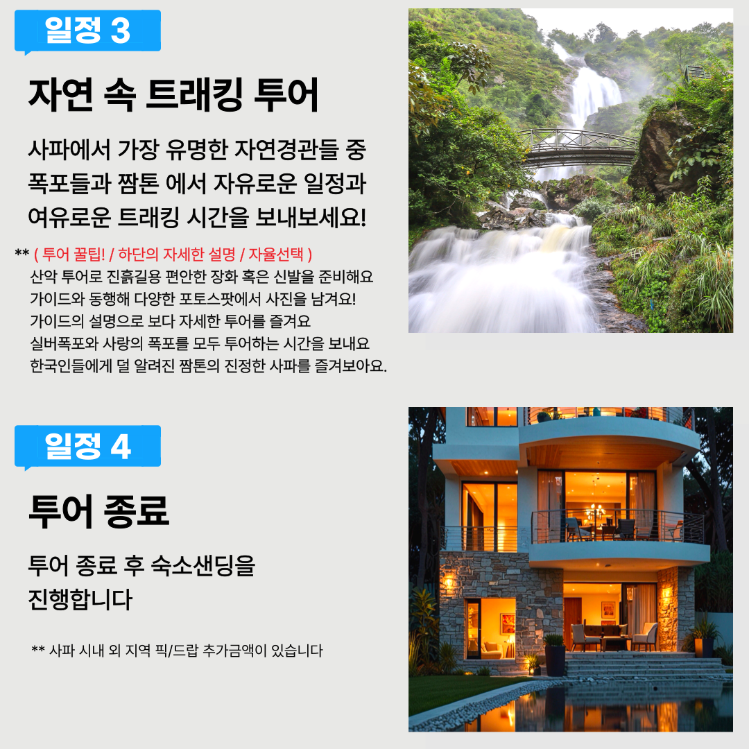 🏨 투어 종료 (사파 시내 외 지역 픽/드랍 추가 금액이 있습니다.)