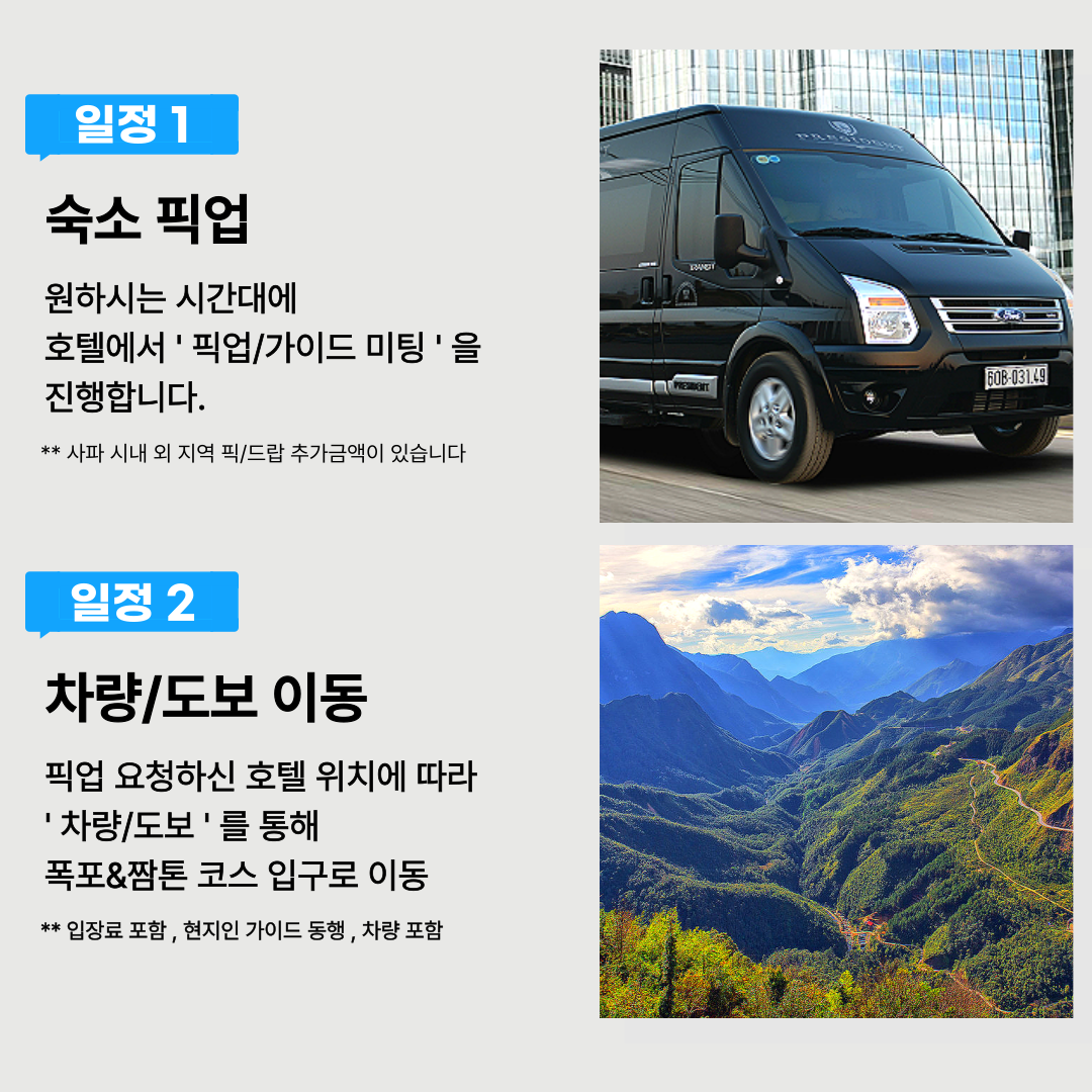 🚗 숙소픽업 (사파 시내 외 지역 픽/드랍 추가 금액이 있습니다.)