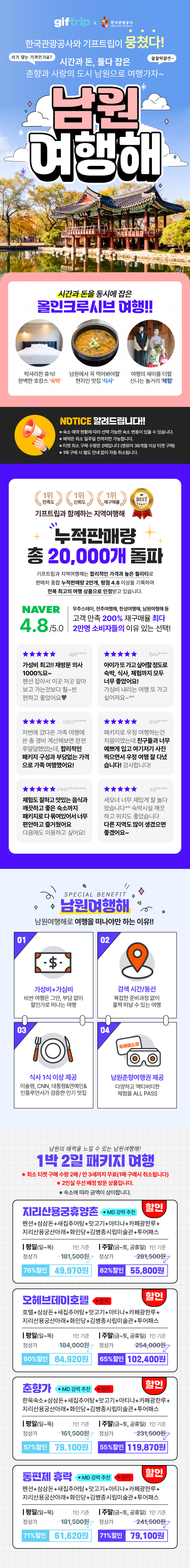 해당상품은 숙소+음식+체험 패키지 연계상품으로