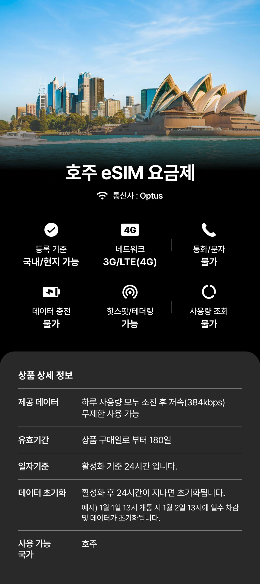 [호주/뉴질랜드] eSIM 데이터 무제한 (1GB)