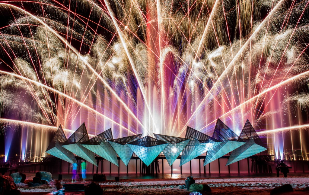 환상적인 바닷가에서 펼쳐지는 야외 멀티미디어 쇼!