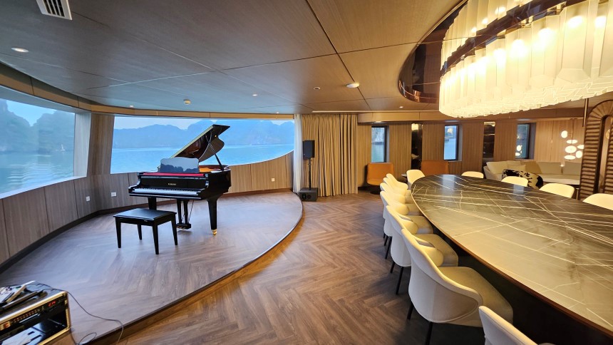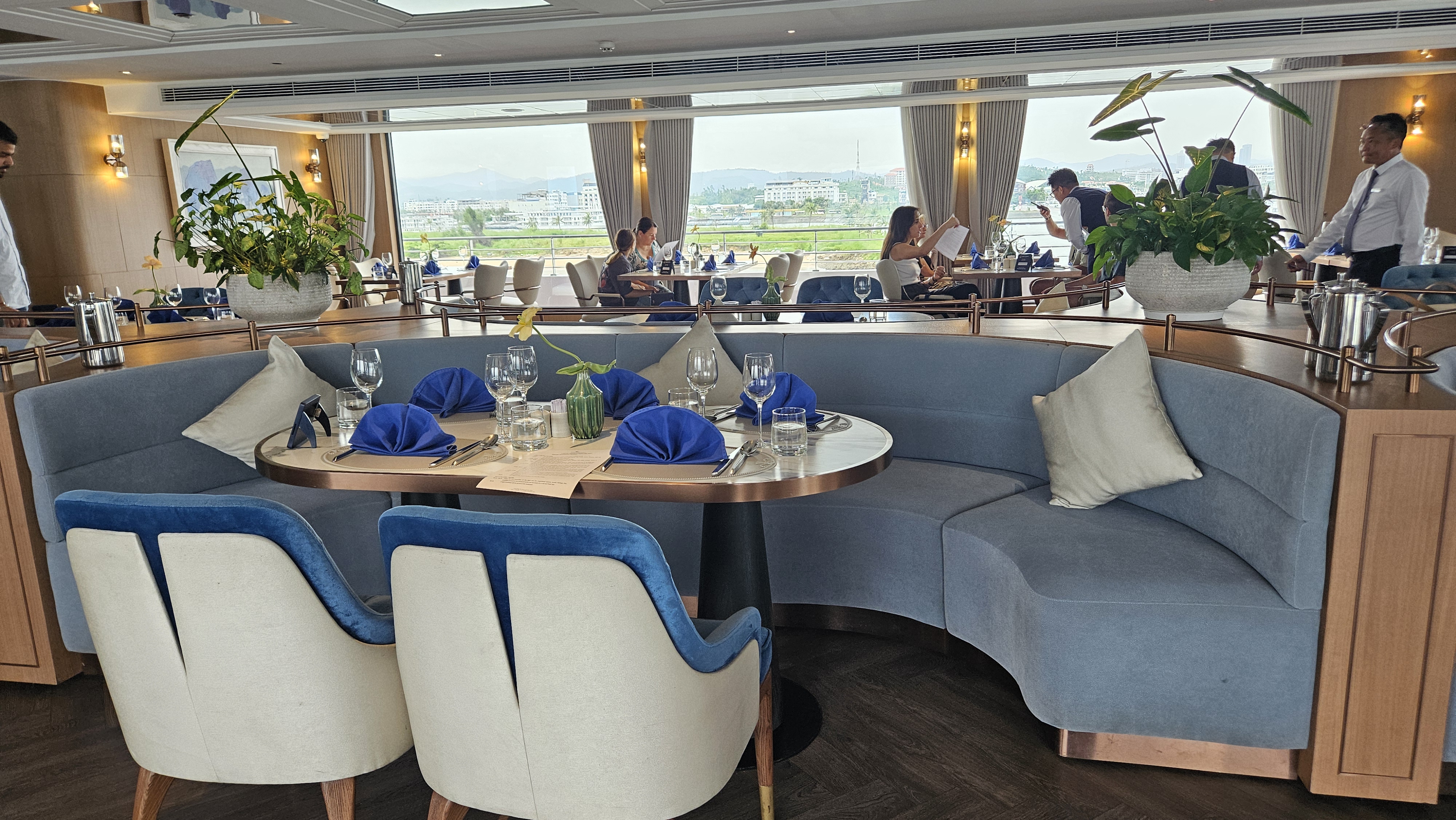 거대한 선상 인피니티풀과 럭셔리 디너 만찬으로