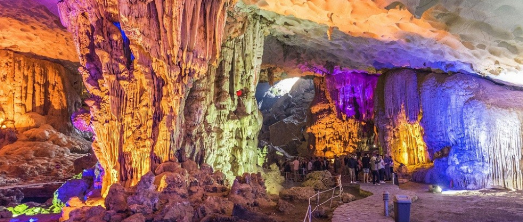 승솟 동굴은, 하롱베이에서 가장 큰 동굴입니다. 이곳 입구 전망대에서 보는 뷰도 아주 아름답습니다. * 승솟 동굴 방문 시 주의사항 - 돌계단으로 되어 있으므로 미끄럼에 주의가 필요합니다. - 오르기 어렵지 않습니다만, 운동화를 신으시는게 좋습니다. - 동굴 방문 시간에, 보트에 남아 계셔도 됩니다. - 동굴투어는 일방통행입니다. 하선 후에는, 무조건 완주하셔야 합니다.