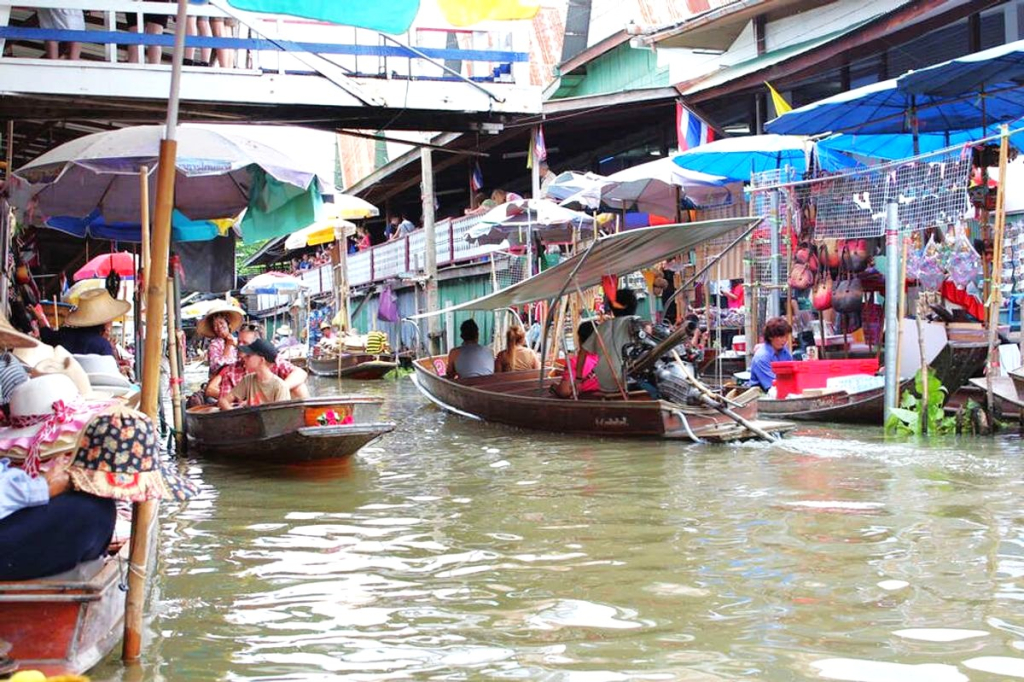 방콕에서 약 1시간 거리에 위치한 담넌사두억은 태국에서 가장 유명한 전통 수상시장입니다.