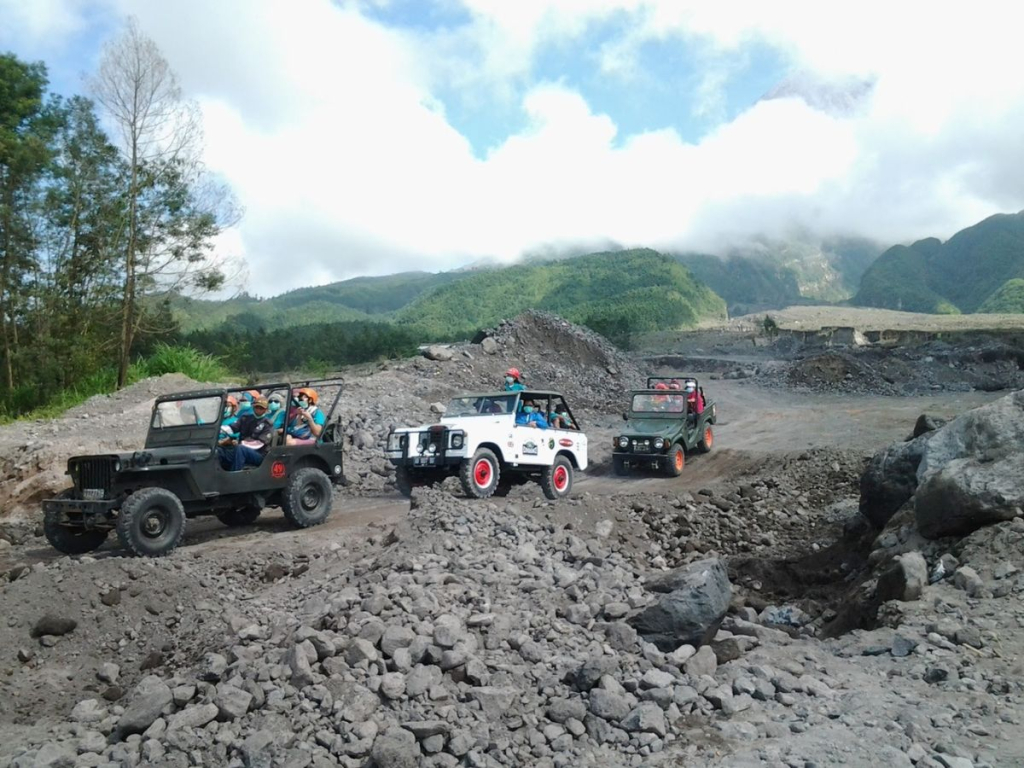 지프를 타고 용암길을 따라 달리며, 므라삐 화산의 생생한 자연과 흔적을 느낄 수 있는 투어입니다.
