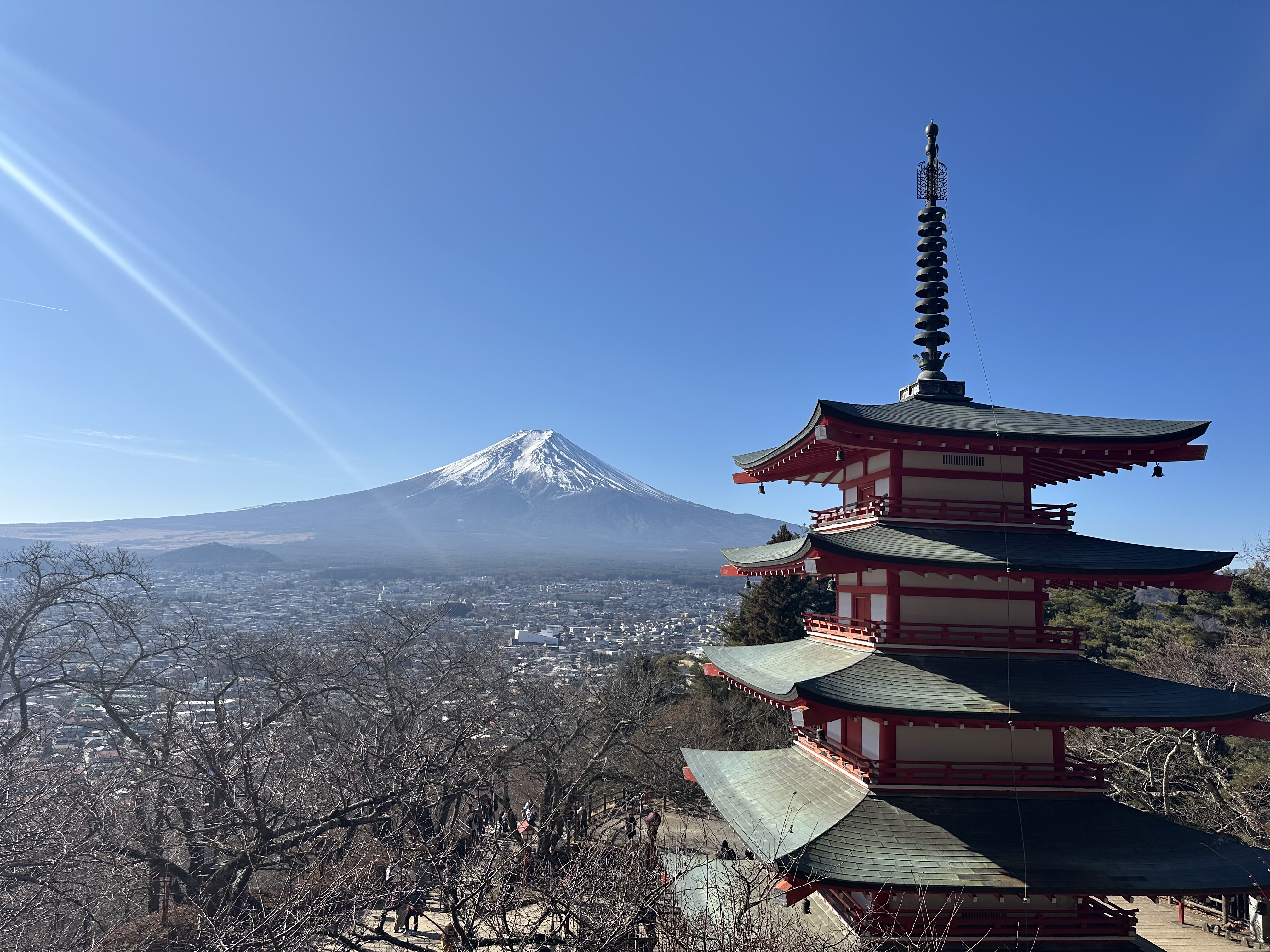 5층탑과 후지산이 한 프레임에 담기는 세계적인 사진 명소.