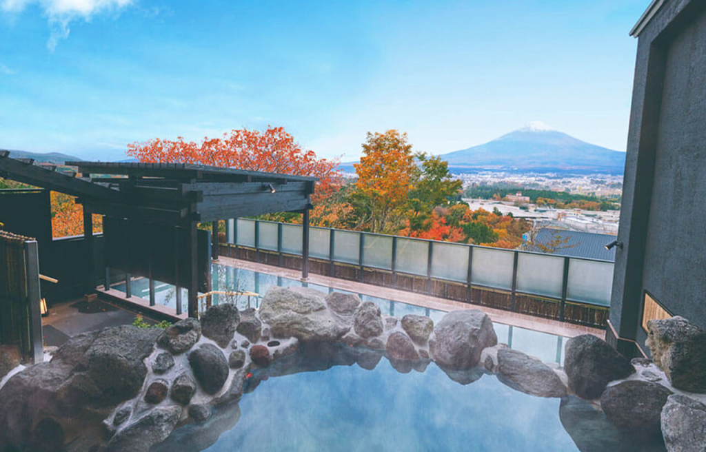 후지산을 바라보며 즐기는 노천 온천으로 모셔다 드립니다.