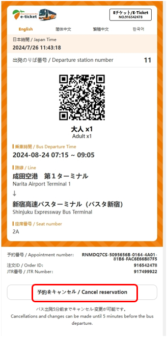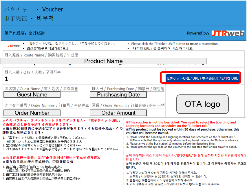 ※이 상품을 구입한 것만으로는 버스 예약이 완료되지 않습니다. “E티켓 URL”을 통해 승하차 지점과 시간을 예약해야만 합니다.